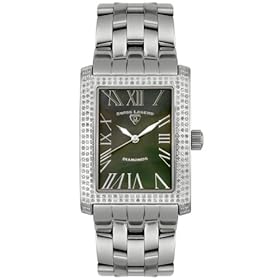With a luxurious diamond bezel and black mother-of-pearl dial, there's nothing dusty about this classic watch design from Swiss Legend. The timepiece is built to last, crafted from polished stainless steel for a time-tested but modern look. Framed by a scratch-resistant sapphire crystal, the rectangular dial is easy to read with large, silver-tone Roman numeral hour markers and luminous hands. This striking men's watch is water resistant to 165 feet (50 M).