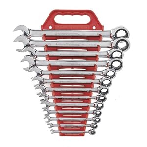 - Includes 13 standard-length combination gear wrenches and molded wrench rack.